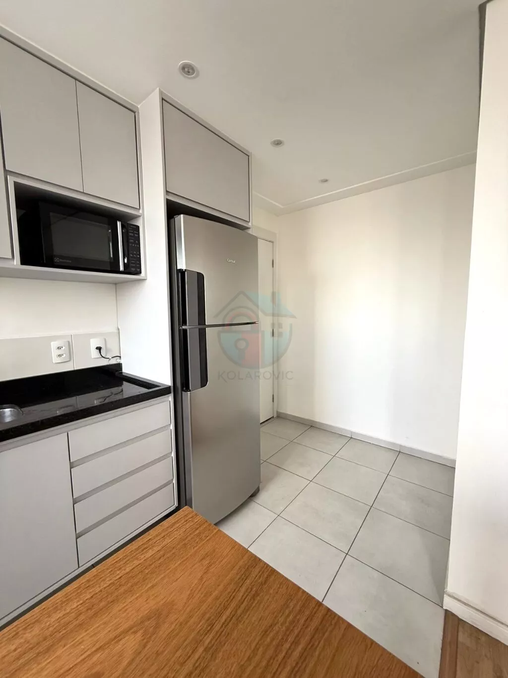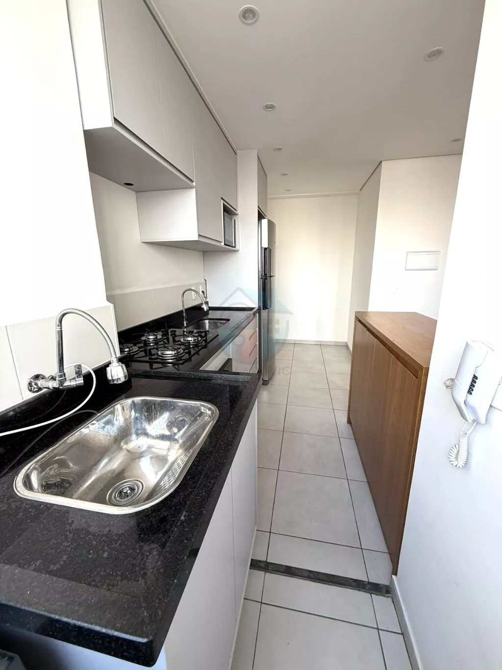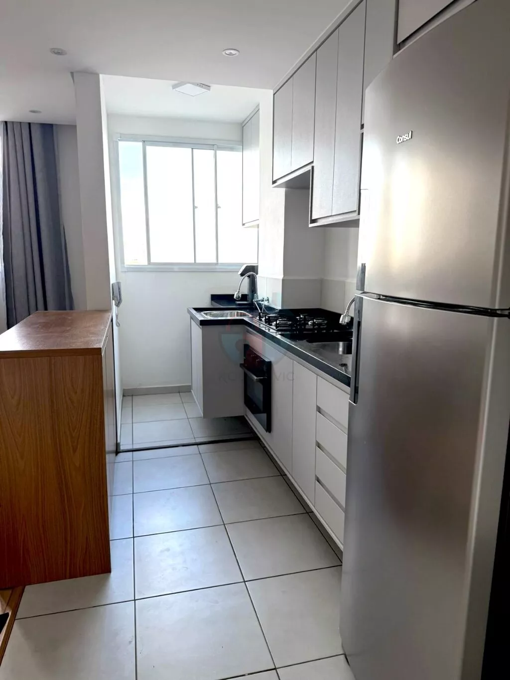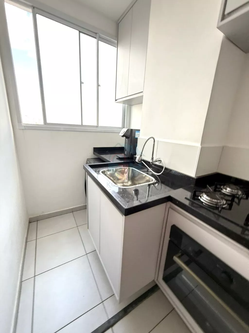 - Cozinha completa com armários, cooktop, forno a gás, geladeira duplex e purificador de água
