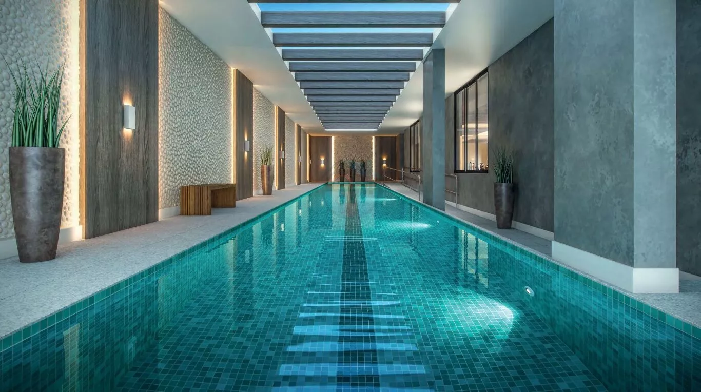 Piscina coberta com raia aquecida