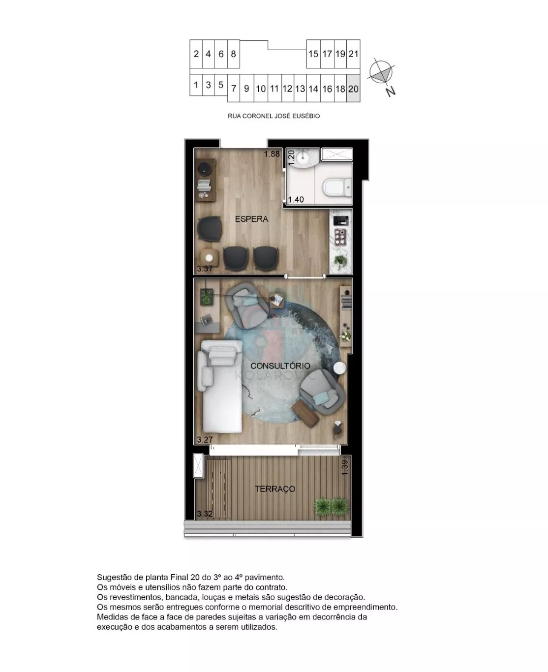 • Salas comerciais de 22m² a 44m²