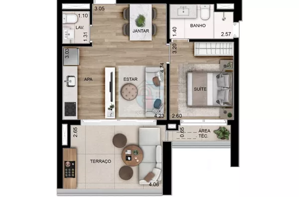 • Apartamentos de 53m² com 1 ou 2 dormitórios